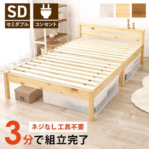 HAGIHARA(萩原) 組立簡単 セミダブルベッド (幅123×奥行207.5×高さ61.5/36cm) プレーンナチュラル 【他商品との同時購入不可】メーカー直送品(沖縄県・離島はお届け対象外となります) MB-5150SD-NA 【返品種別B】