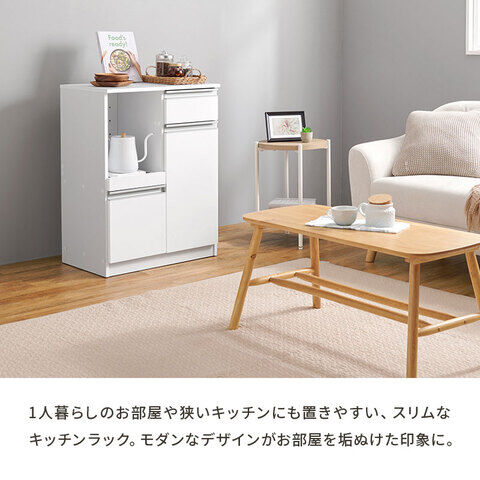 ◆狭いキッチンにも置きやすいスリムなカウンターキャビネット。