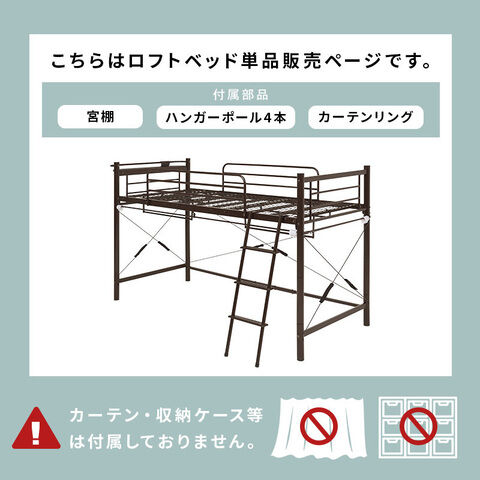 ◆ベッド下の空間に市販のカーテンを取り付け可能なパイプロフトベッド。