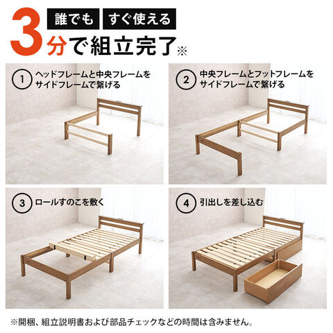 HAGIHARA(萩原) 組立簡単 引出し付シングルベッド (幅100×奥行207.5×高さ65/36cm) ライトブラウン 【他商品との同時購入不可】メーカー直送品(沖縄県・離島はお届け対象外となります) MB-5150S-LBRHS 【返品種別B】