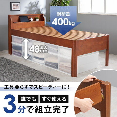 ◆床面高さも3段階から選べ、大容量収納スペースが確保できる宮付き木製ベッド。