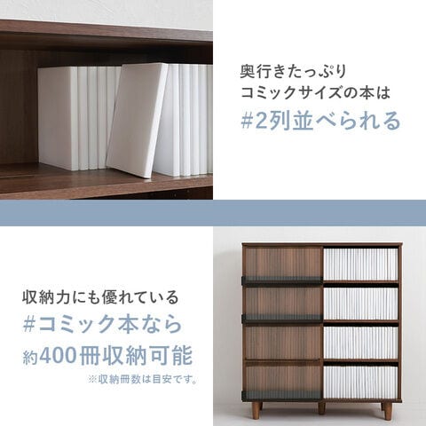 ◆前後分割棚板仕様で、たっぷり収納でき、扉前板には雑誌やカードなどのディスプレイも可能です
