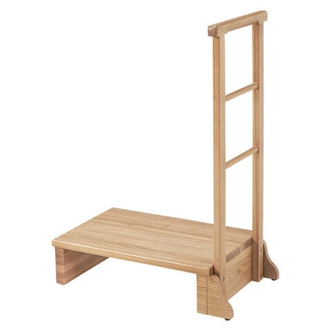 ◆タモ材の木目が美しい、安心で便利な手すり付きの玄関踏み台
