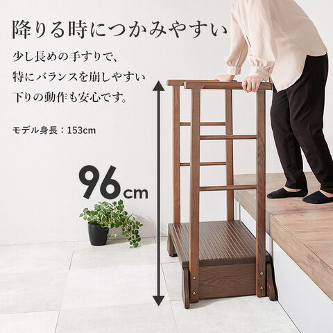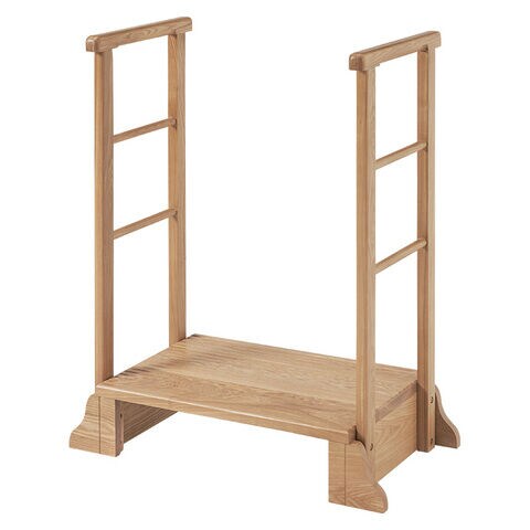 ◆タモ材の木目が美しい、安心で便利な手すり付きの玄関踏み台