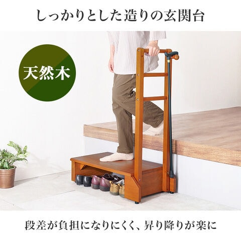 HAGIHARA(萩原) 手すり付き玄関踏み台 片側手すり (幅70×奥行35×高さ95×踏み台高17.5cm) ライトブラウン VH-7938LBR-S 【返品種別A】