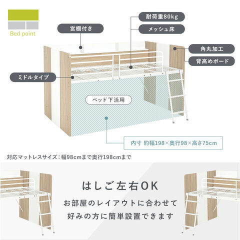 - サイズ(約):[ベッド]幅117×奥行203×高さ120×床面高81cm [デスク]幅120×奥行55×高さ72cm [ワゴン]幅74.5×奥行40×高さ72cm