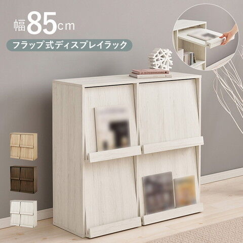 HAGIHARA(萩原) フラップ式ディスプレイラック (幅85×奥行35×高さ85cm) ホワイトウォッシュ RCC-1716WS 【返品種別A】