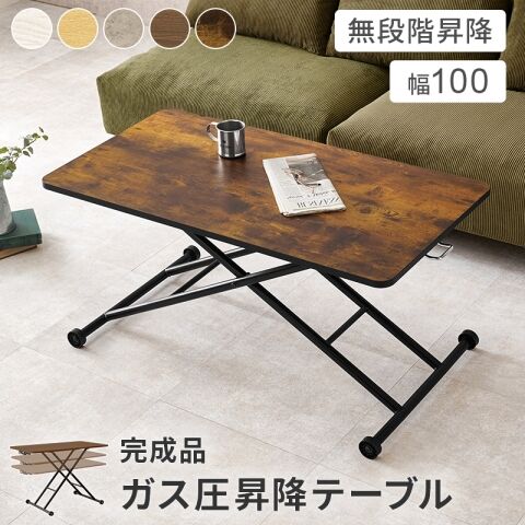 ◆ガス圧式なので無段階で天板高さを調整できる昇降テーブル。