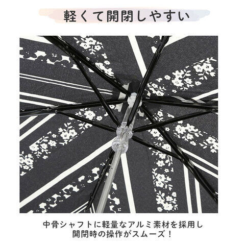 中骨シャフトに軽量なアルミ素材を採用し、開閉時の操作がスムーズ!