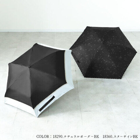※18370.シルエットフラワーBK・18380.淵ボーダーBKの2カラーのみ、傘の全長、収納時の長さが異なります。ご注意ください。