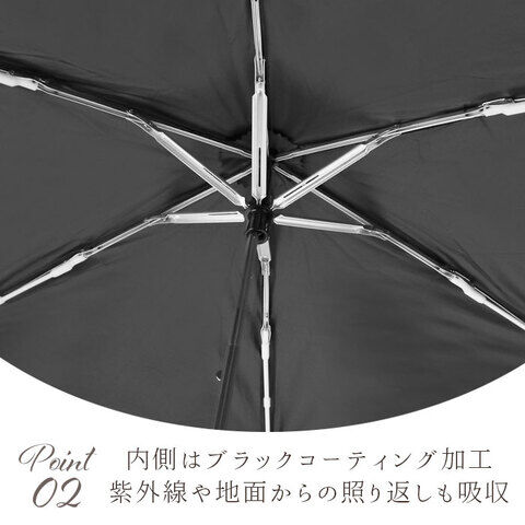◆傘生地の内側にはブラックコーティングを施し、紫外線はもちろん地面からの照り返しも吸収。