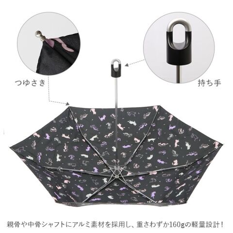 ◆親骨や中骨シャフトにアルミ素材を採用し、重さわずか160gの軽量設計!