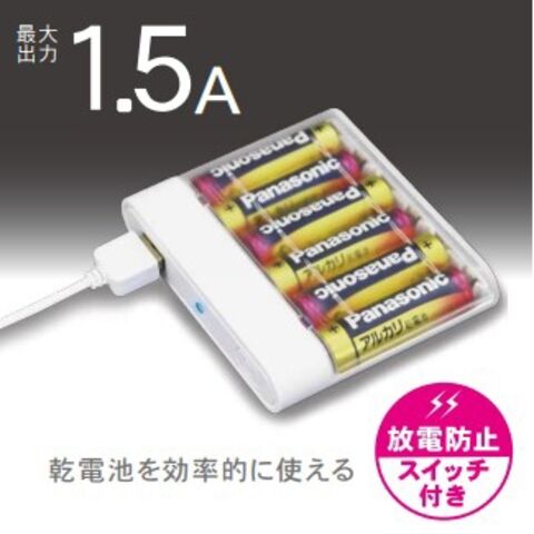◆単3形アルカリ電池を6本搭載。充電容量3000mAhの大容量タイプです。