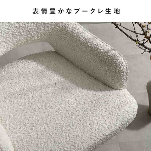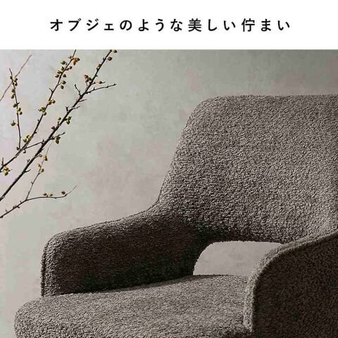 ◆光の角度によって表情を変えるブークレ生地と天然木オーク材が、空間に上質な印象を与えます。