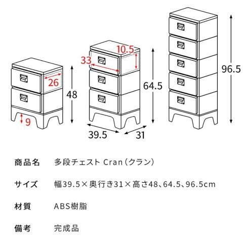 ◆ツヤ感と丸みのあるデザインがレトロ可愛い多段チェスト『Cran(クラン)』。