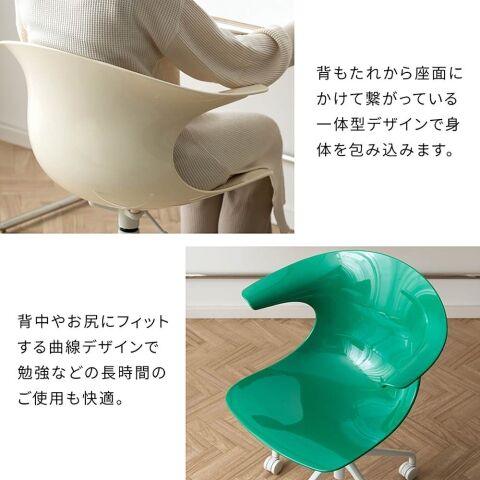 ◆強度の高いポリカーボネート製の座面は背もたれ一体型でゆとりをもってお座りいただけます。