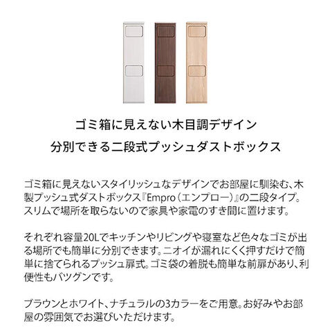 ◆ゴミ箱に見えないスタイリッシュなデザインでお部屋に馴染む、木製プッシュ式ダストボックス『Empro(エンプロー)』の二段タイプ。