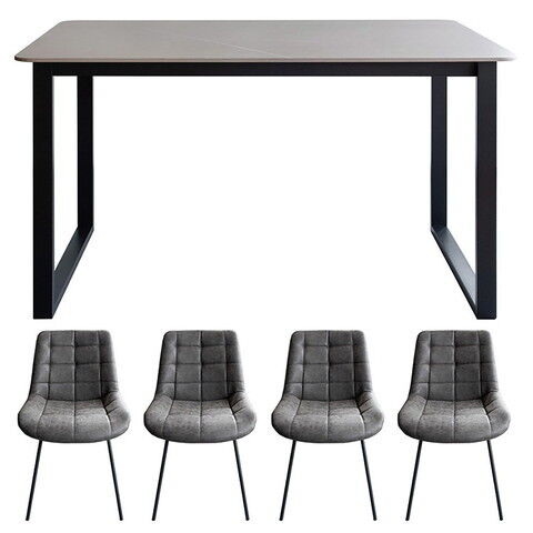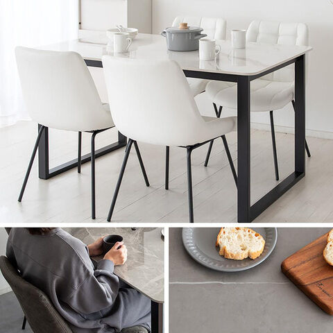◆セラミック素材の大理石風天板のダイニングテーブルと、身体にフィットする形状でキルティングが施されたPUレザーのダイニングチェアのダイニングセット『Lement(レメント)』。