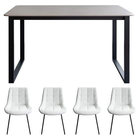 ◆セラミック素材の大理石風天板のダイニングテーブルと、身体にフィットする形状でキルティングが施されたPUレザーのダイニングチェアのダイニングセット『Lement(レメント)』。