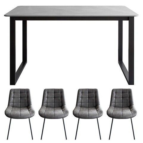 ◆セラミック素材の大理石風天板のダイニングテーブルと、身体にフィットする形状でキルティングが施されたPUレザーのダイニングチェアのダイニングセット『Lement(レメント)』。