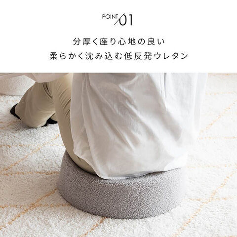 ◆分厚く存在感のある座布団は、低反発ウレタンを使用した優しく沈み込むもちもちクッション。