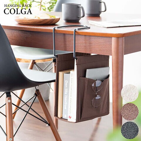 ◆ダイニングテーブルやデスクに引っ掛けるだけで新聞や雑誌が収納できる帆布ケースのハンギングラック『COLGA(コルガ)』。