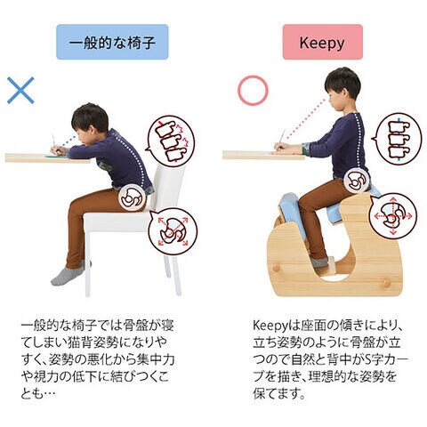 ◆プロポーションチェア『Keepy』は膝に負担をかける事が少なく、背筋を伸ばして座れる椅子となっております。