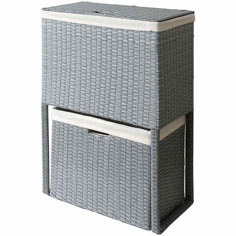 ◆衣類がたっぷり置けて取り出しやすく、分別もできる縦型2段式のラタンランドリーボックス。