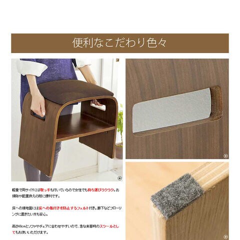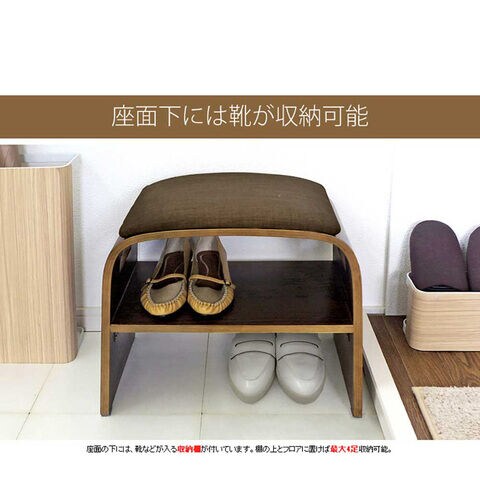 ◆木目の美しい曲げ木と座り心地の良いファブリックの座面、便利な収納棚付きで玄関に一台あるととっても便利です。