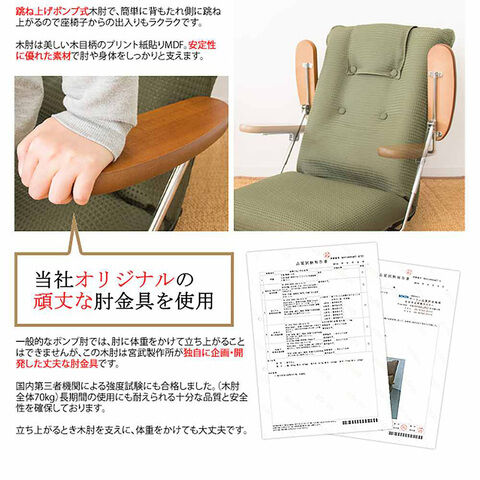 ◆特製のオリジナルの肘金具を使用しているのでとても丈夫で、立ち座りに便利です。