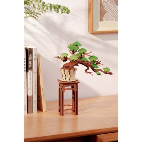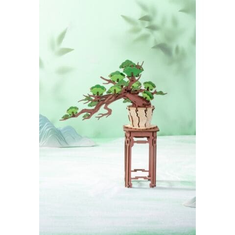 力強くダイナミックな枝が特徴の松の盆栽を、ウッドパズルで再現!