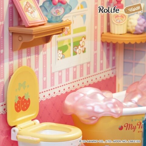 「マイメロディのバスルーム」は、ヘアバンドをつけたマイメロが可愛いらしい、バスルームがモチーフのミニチュアハウス。