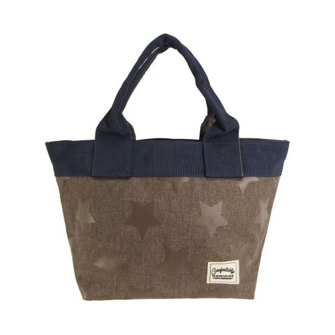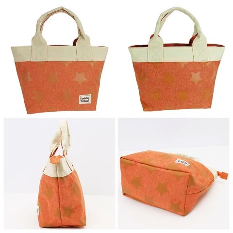 ポップなスター柄を散りばめたポリキャンバス素材に、太めのテープ生地の縁取りがワンポイントになったシンプルミニトート。