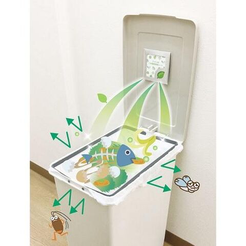 ◆ごみ箱のニオイを消臭し、コバエが生ごみに卵を産みつけることを抑制します。コバエの繁殖を防ぎます。