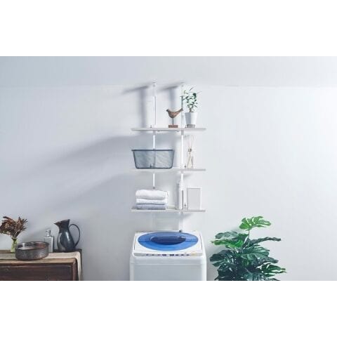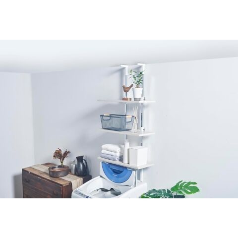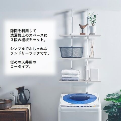 オビタス 設置場所を選ばない突っ張りランドリーラック棚板3枚ロータイプ(ホワイト・棚板ホワイトウッド) NOS-15WW-OV 【返品種別A】