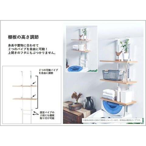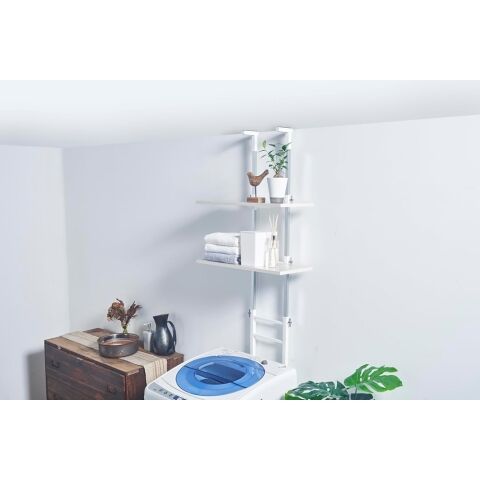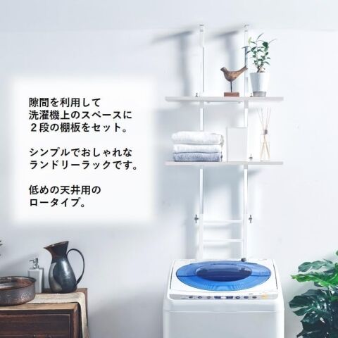 オビタス 設置場所を選ばない突っ張りランドリーラック棚板2枚ロータイプ(ホワイト・棚板ホワイトウッド) NOS-20WW-OV 【返品種別A】