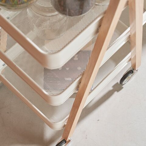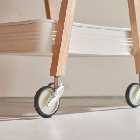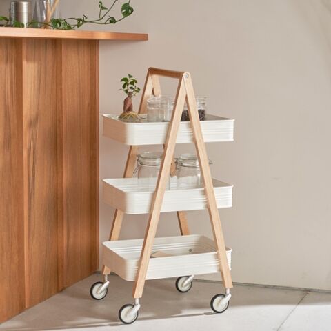 ◆シンプルなモノトーンカラーと天然木がアクセントのおしゃれな3段ワゴン。