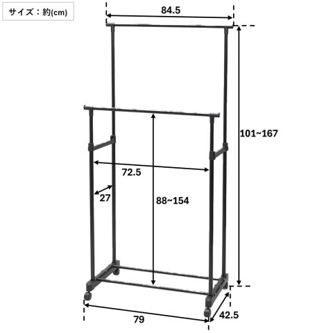 ◆高さ調整可能なため、衣類の着丈に合わせて調整いただけます。