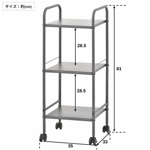 ◆シンプルなデザインで、リビングやキッチンなど場所を選ばず利用しやすい3段ラック。