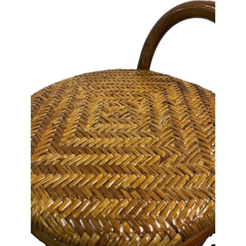 ◆軽くて丈夫なラタンの特徴をいかし作業中の椅子の持ち運びが楽にできるように取ってつけました。