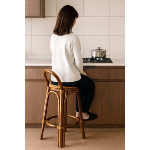 ◆軽くて丈夫なラタンだからこそ重くなくて持ちやすい。使いやすい立ち作業椅子です