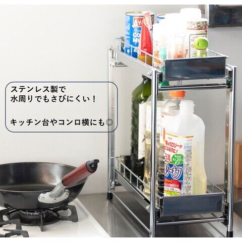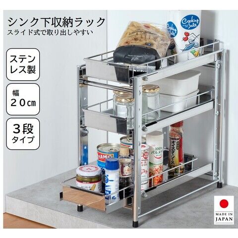 オビタス ステンレス製引出しラック3段 幅20(シルバー) 燕三条製 YMG-024-OV 【返品種別A】