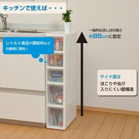 ◆小物収納に適し、様々なスペースを有効活用できる移動に便利なコロ付引き出し式ストッカーです。