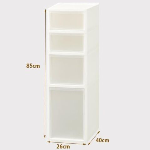 ・引き出しサイズ:(S)3kg、(M)8kg、(L)16kg - 材質:ポリプロピレン