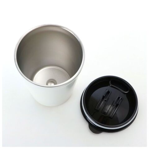 ◆片手でスライドができるフタ付きなので、デスクの上でタンブラーを倒しても飲み物のこぼれ防止になる。