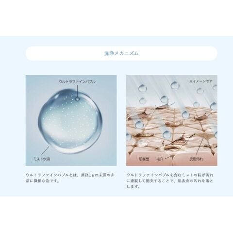 ナチュラルケアミストは、驚きの洗浄力を発揮。ウルトラファインバブルを含んだミストがやさしく素肌を包みます。