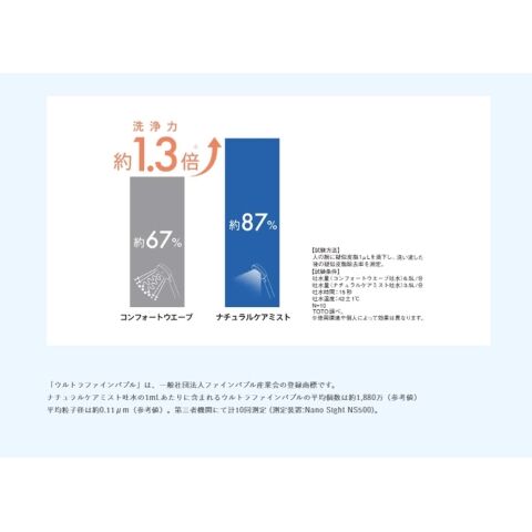 コンフォートウエーブは、従来品と比較し高い節水性を実現。ウエーブ&スプレー2つの水流で節水しながら軽快な刺激のある浴び心地を実現します。