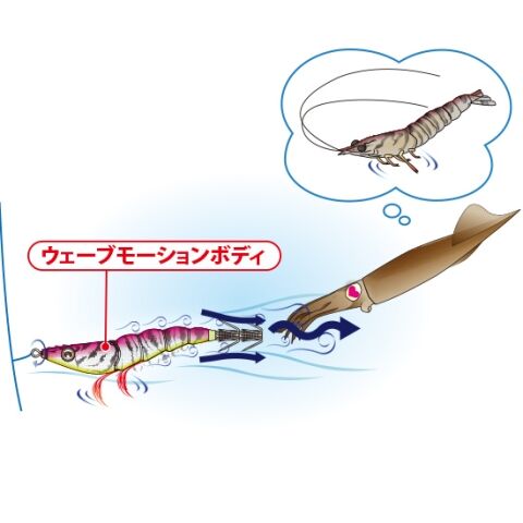 凸凹ボディが従来のエギ形状では出せない強い波動を発生。その波動でイカを誘うウェーブモーションボディ。
