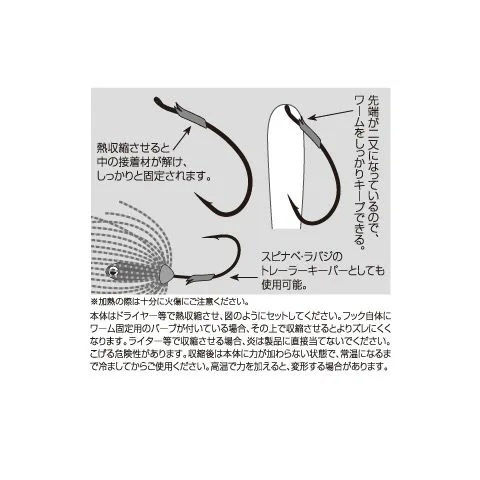 熱を与えると本体が収縮すると同時に、内側の接着剤が溶け出し、フックにしっかり固定される。