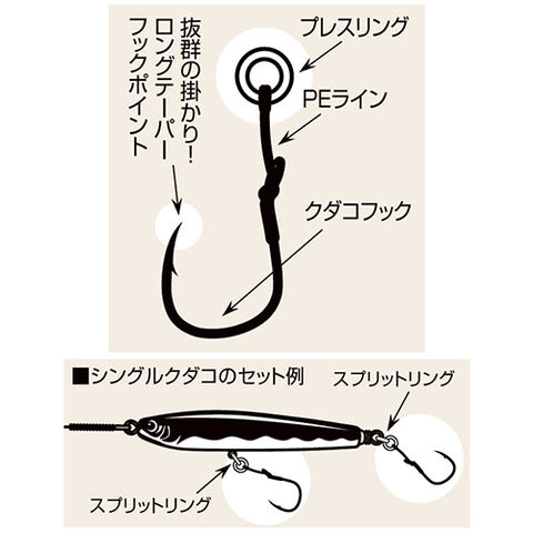 ◆プラグ対応、<クダコ>のPEライン付シングルフックアシスト